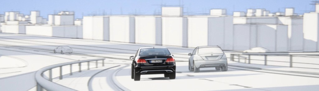 Infofilm to showcase the Mercedes Assist feature. Full CG car in a stylised city.
